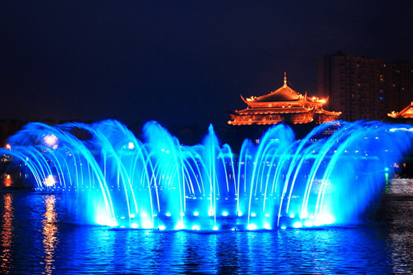 音乐喷泉是一种为了娱乐而创造出来的可以活动的喷泉。是在程序控制喷泉的基础上加入了音乐控制系统,计算机通过对音频及MIDI信号的识别,进行译码和编码,最终将信号输出到控制系统,使喷泉的造型及灯光的变化与音乐保持同步,从而达到喷泉水型、灯光及色彩的变化与音乐情绪的完美结合,使喷泉表演更加生动更加富有内涵及体现水的艺术。