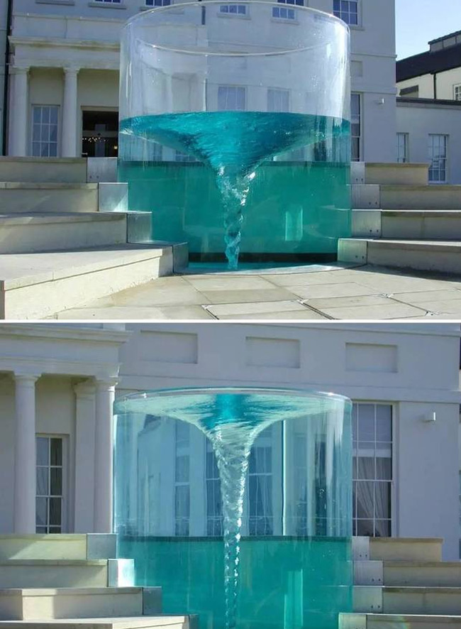 乍一看以为是PS的图片,其实是用水流遮盖了管道,造成水龙头悬浮的效果。(好大一水笼头啊,没觉得多好看,但是这创意不错,对吧?)