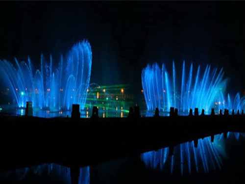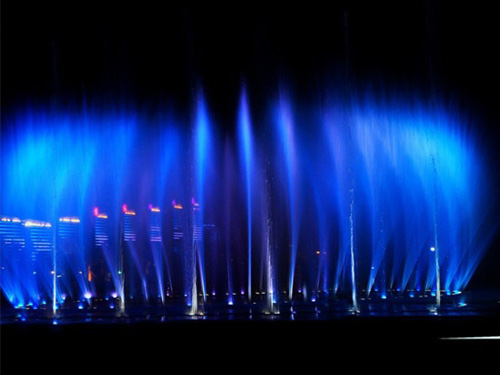 辽宁抚顺月牙岛水秀,包括音乐喷泉、数控一维、大型投影、冷雾、大小气爆、激光、喷火表演等部分组成,项目一共配有800多喷嘴,1000余盏大功率七彩DMX512控制的LED灯光。