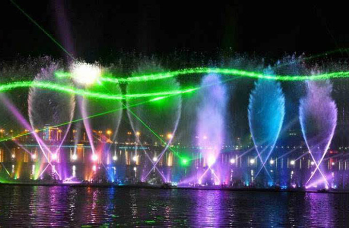 激光首先是在水幕上做激光表演,这是音乐喷泉的组成部分,激光秀变为主角,其他各种水型成为激光表演的配角。以表演艺术为基础,以彩色激光为载体,配合独特的创意构思,融入演员的交互动作,从多元化空间表现出梦幻的激光影像和绚烂夺目的光影效果。激光秀主要的表现形式有激光魔术、激光影子舞、激光鼓、酷炫激光人、激光琴等。