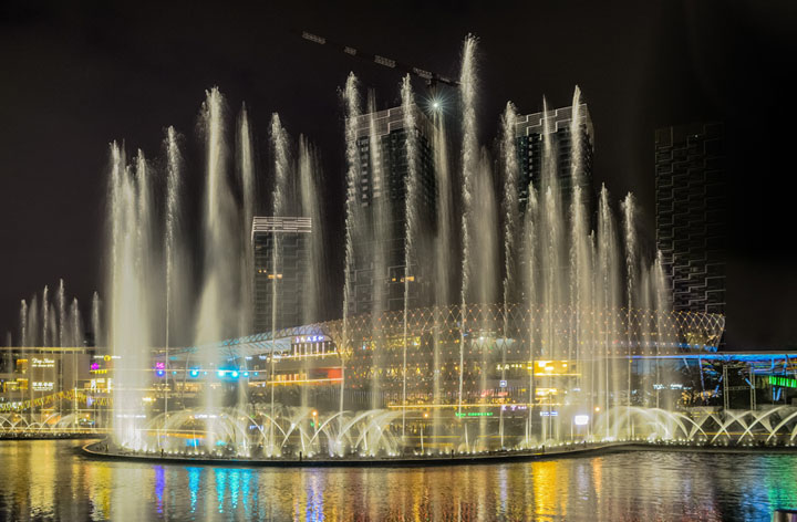 喷泉一般在夜间都是可以呈现出非常完美的效果,如果我们真的是想要保证很好的搭配效果,那么设备方面的检测是很关键的,而且也是绝对不能出现任何的问题。而这类喷泉一般都是需要搭配上合适的彩灯,现在使用到的喷泉LED灯都是具有比较不错的使用效果,但是我们肯定还是应该做好综合性的处理。而且彩灯的密封性和接线工作肯定也是不能忽略掉的。